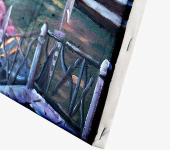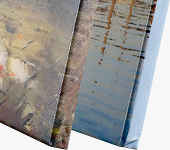 Your Giclée reproduction will be printed to the size you choose and stretched on a 3/4" wood frame made from top-quality kiln dried fir stretcher bars. The canvas will be stapled to the frame on the sides. This type of stretching is a very cost effective solution if you plan to frame your Giclée in the future.